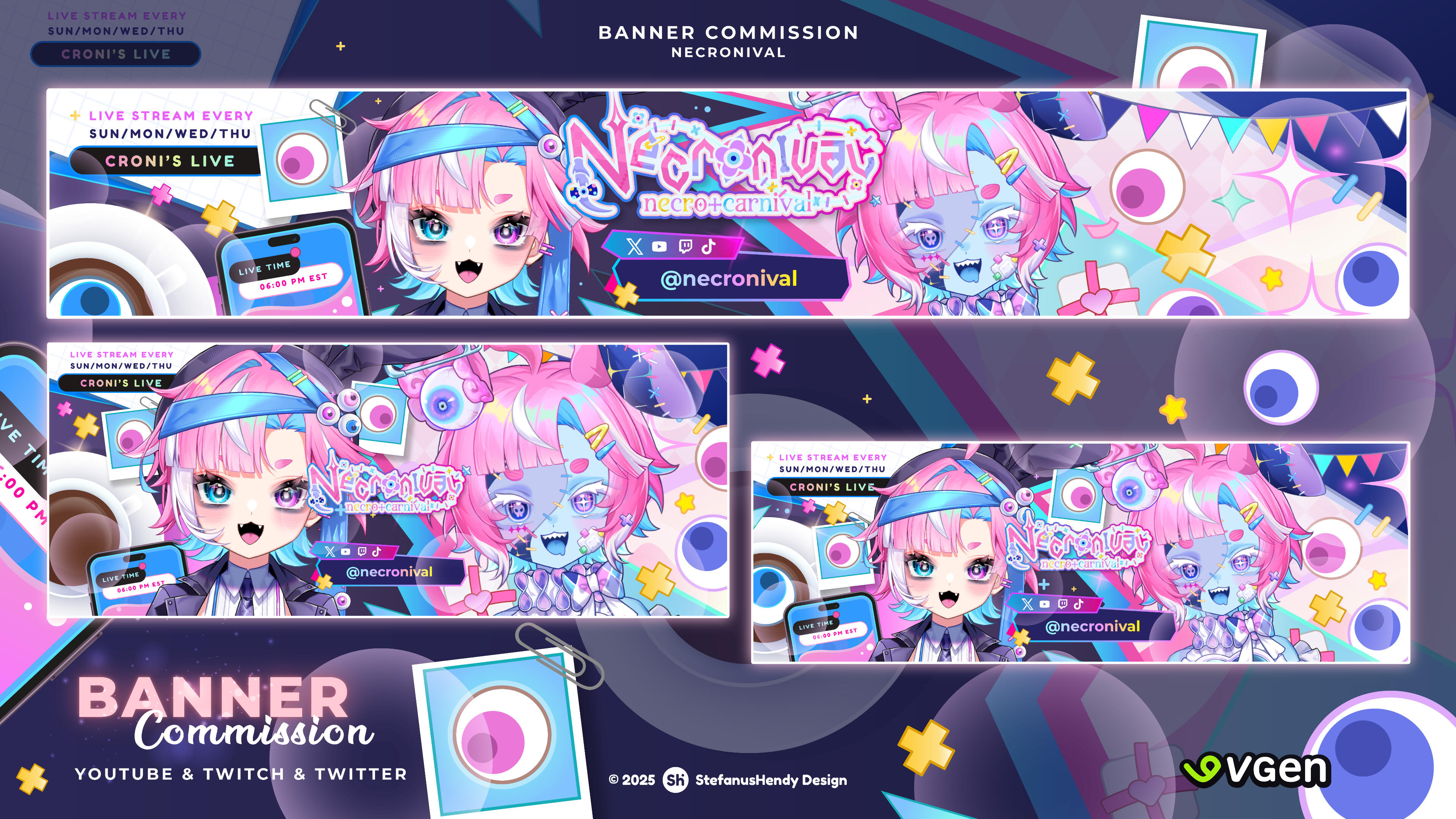 I specialize in creating visual assets for VTubers, Agencies, Companies, and Brands, including