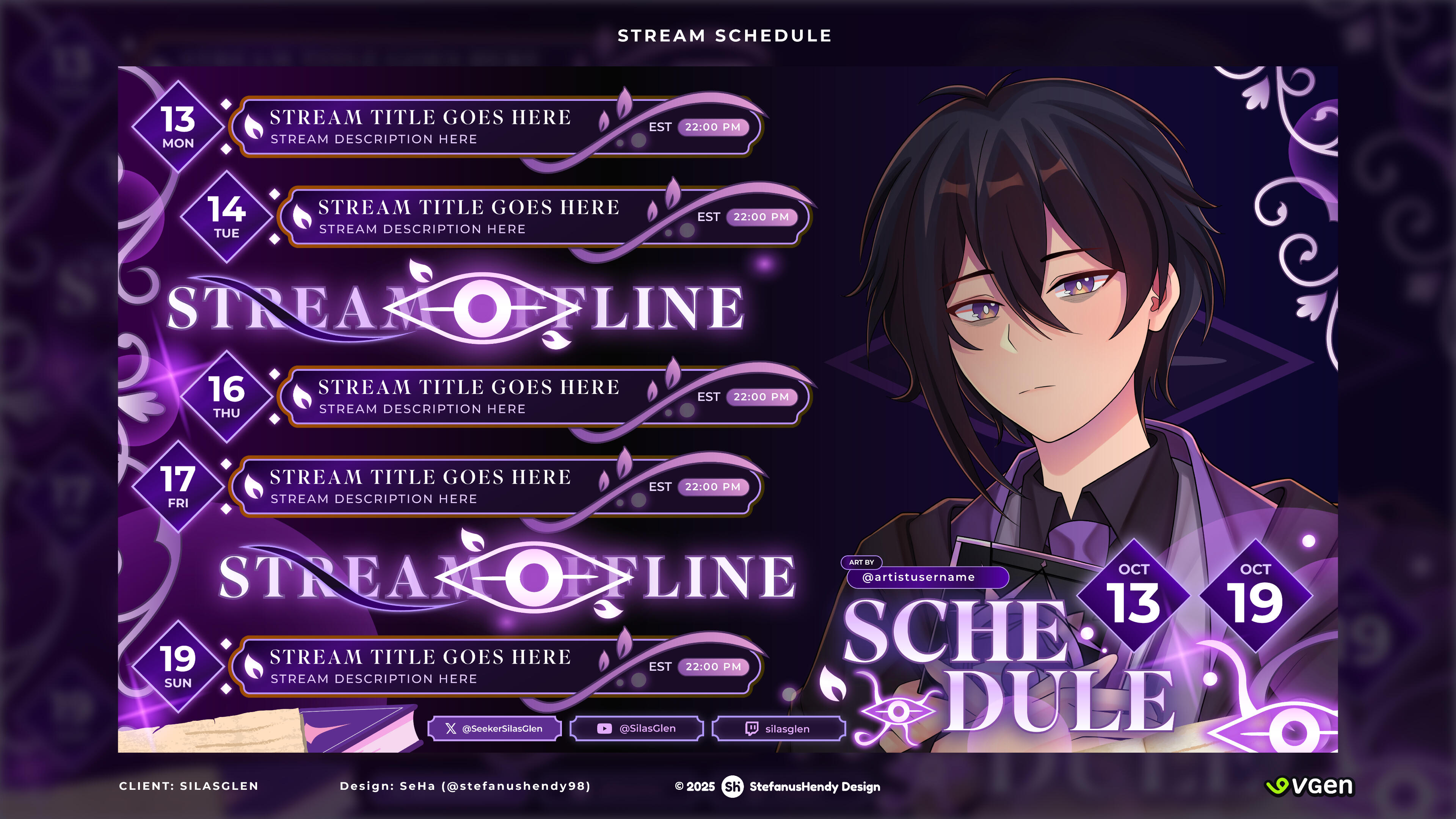 Contact me via X/Twitter (@stefanushendy98) or Discord (SeHa#9743 or stefanushendy) to request and ask for available slots.