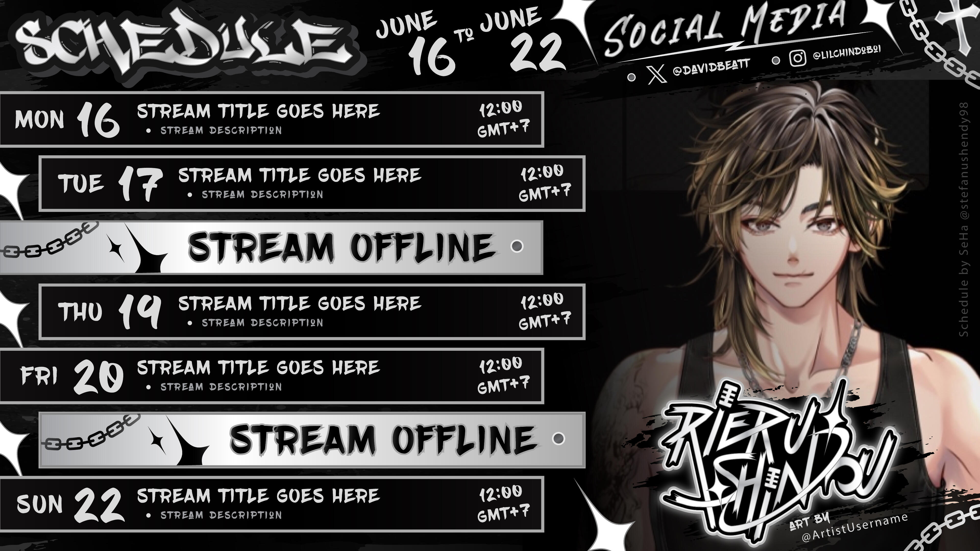 | Stream Schedule | $100 - $130 (IDR 350k - IDR 500k) |